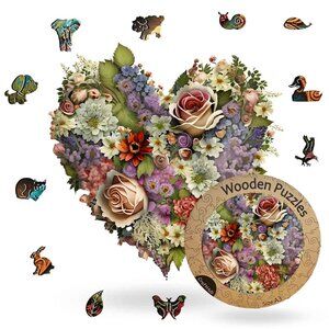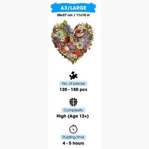Wooden puzzle pieces, distinctive cut, vivid colours, unique pieces for each theme, high-quality materials and precise laser cutting.