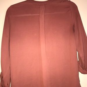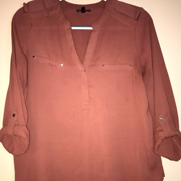 Burnt orange / red / brown 2 faux pockets in front Gold detailing Deep V