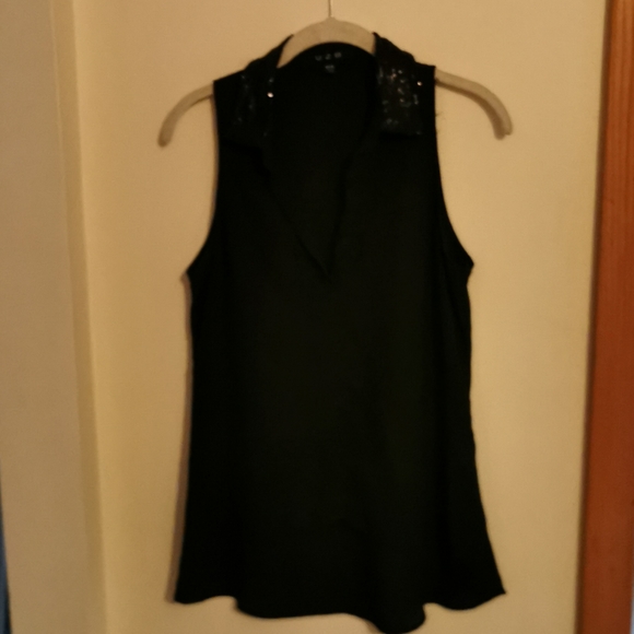 Black sleeveles blouse. Colar is black sequins button front.
