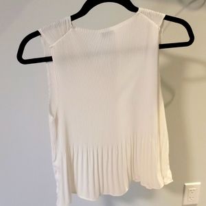 Babaton white pleated sleeveless blouse. Fitted in the chest and more flowing aims the waist. Brand new, never worn. Size small.