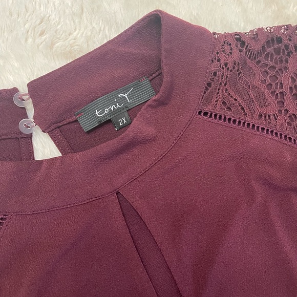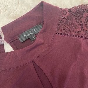 Gorgeous silky burgundy blouse with lace details. Worn once.