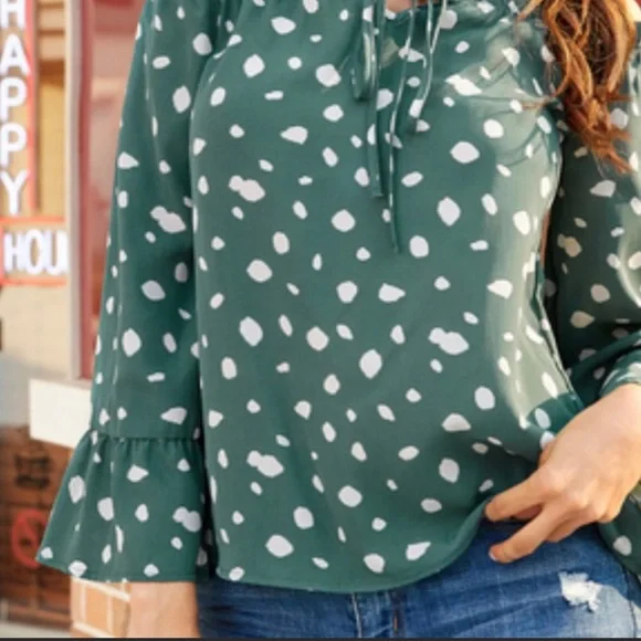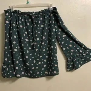 Green blouse with white dots, without shoulders and bell sleeves it’s very good condition