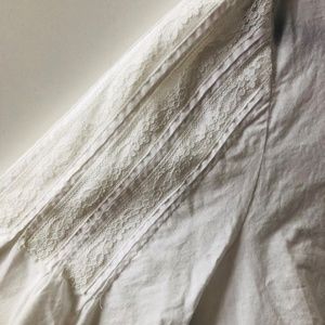 Romantic, relaxed casual look. Light and comfortable feel. Tighter fit on top and more ample fitting on bottom. Nicely embroider lace in the front. 3/4 length sleeves. No description tag available except for make. full length is 30 inches. Underarm to underarm seam: 21 inches. Item sold without displayed accessory.. Pet and smoke free environment