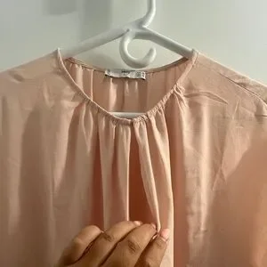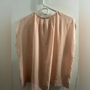 Selling new shirt / blouse from Mango with a small opening in the front, included button to close it. Perfect for work or every day wear. It is a nude colour so wear a nude bra with it if you like or dress it up for a different look.