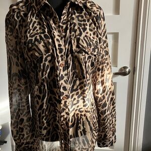 Denim & Supply Ralph Lauren Leopard Print blouse; button front and at sleeves; front breast pockets