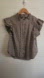 Blouse Flutter sleeves Ruffles Brown Cream Gingham pattern Size L DKNY NWT
