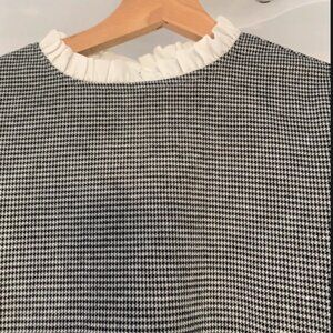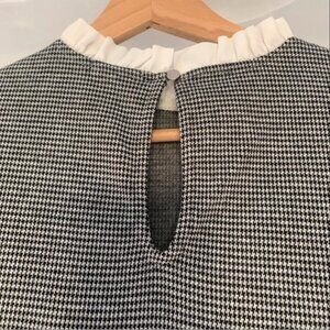 Apportez une touche chic et intemporelle Ă votre style avec cette superbe blouse neuve en maille pied-de-poule noire et blanche, taille XS (34).