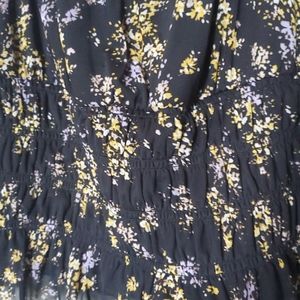 Light breezy blouse with yellow and purple (lilac) floral print