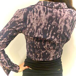 High waistline blouse in black and greyish/ rose cotton with buttons and collar. Made of viscose. Cross at the waistline