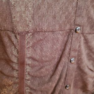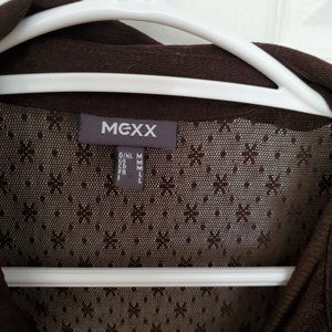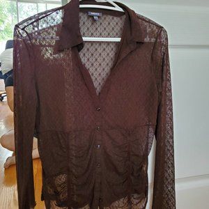 See through lacey shirt from Mexx to go with spaghetti strap tops for work or leisure in the fall /summer. Not often worn. Great condition. Medium small, has an extra button in the sleeve.