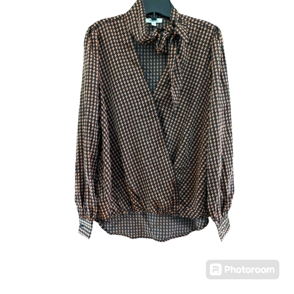 Blouse/Top. Size M. Long-sleeved, cuffed top. Como Blum Brown and Black.