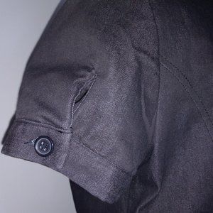 Never worn: short sleeved blouse-jacket, greyish black, women's Canadian size "12P" (Petite), Reitmans brand, but really a women's US size 6.