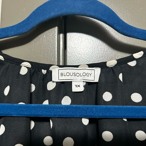 Blousology Sheer Polka Dot Blouse with Sleeve Bows | Black & White | Size 1X