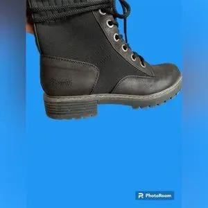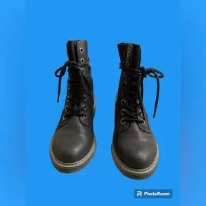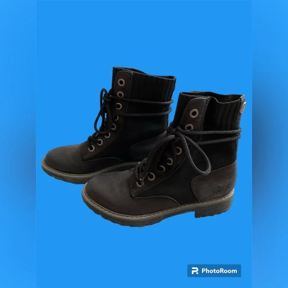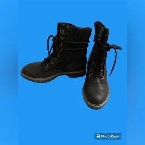 Fashion knit bootie. Lace closure with no zipper. Almond toe finishing with a stretchy knit detailing finishing. Great amount of grip, some wear (see photos). Gently used, in good condition. Length measures 10”, widest width 4”