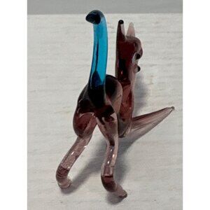 Blown Glass Cat Figurine Blue Tail 2.5" Handcrafted Cat Lovers Unique 2.5" READ