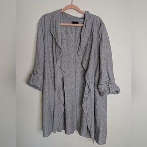 Blu No. 9 Linen Waterfall Cardigan Size XL Grey Pocketed Lagenlook