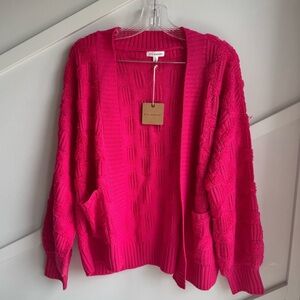 Blu Pepper Checkered Textured Knit Bright Pink Cardigan size S