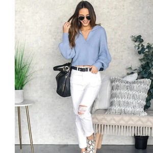 Blu Pepper Collar Knit V Neck Sweater Blue Size Small