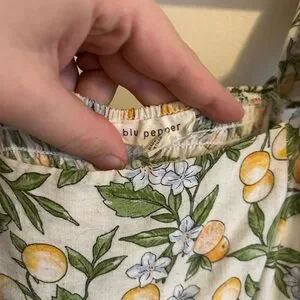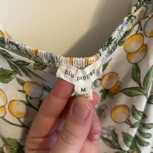 Cute lemon tree pattern. Has elastic band at the back so it sits comfortably across your chest. Cute ruffled tank top sleeves and tiered flowy maxi length.