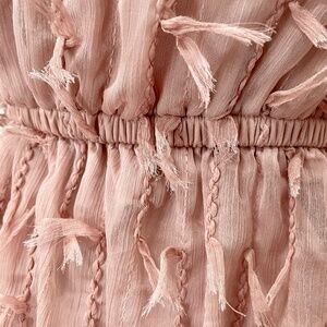 Blu Pepper Textured Pink Mini Dress with Ballon Sleeves and Elastic Waist