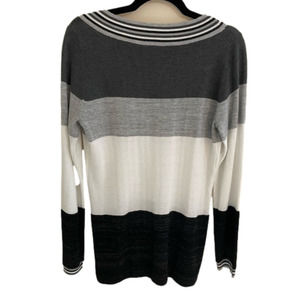 Blu9, Colour Block Vneck Varsity Knit Sweater with Silver Metallic Thr…