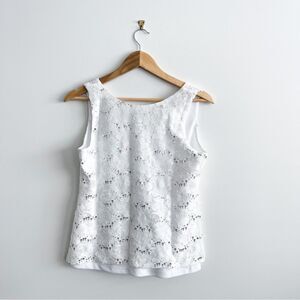 Blu Sage Tank Top V Neck White Women's M Lace Silver Sequins Lined