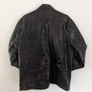 Men's Large Faux-Leather Jacket with Blue Accents - Fair/Worn Condition