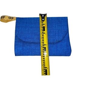 Charming blue pouch perfect for cards, coins or small accessories. Easy to carry and stylish.