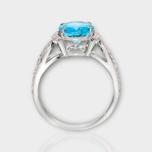 Natural Blue Aquamarine weighing 1.09 ct set on a 14K white gold band with natural pink round brilliant cut diamonds weighing 0.38 ct.