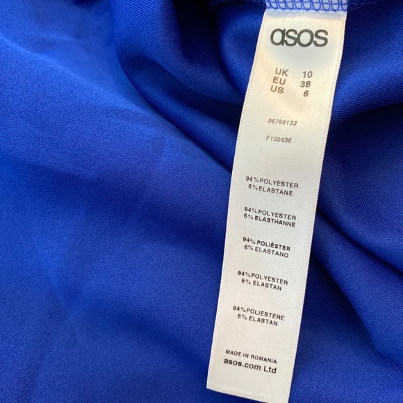 NWT Bright blue stretchy 'scuba' material with a back bow and side zip. There are 3 little snags ( 2 can't be seen when wearing) I just didn't end up returning.