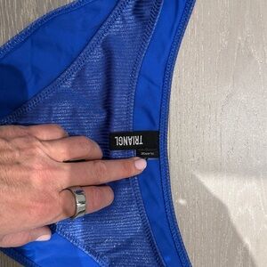 Stylish blue bikini set with a shimmering finish. Perfect for the beach or pool.