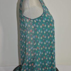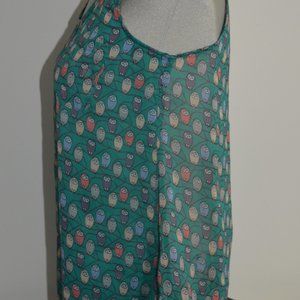 Adorable Green Sheer Owl Print Tank with Pocket. This is a sheer piece.