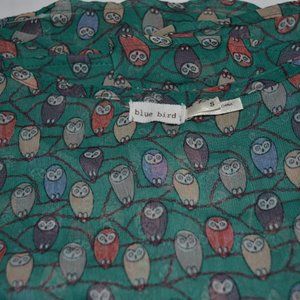 Blue Bird Sheer Green Owl Print Sheer Tank Pocket