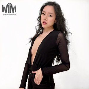 Blue Blush l Black Plunge V-neck Long Sleeve Bodysuit