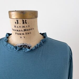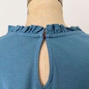 Blue Boden Long Sleeve Cotton Modal Jersey Blend Ruffle Top - Sz 12 Cottagecore