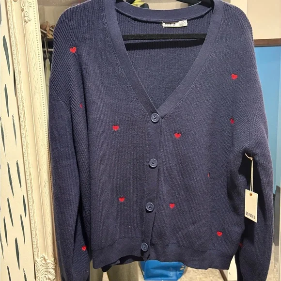 Blue Button-Up Sweater with Reed hearts