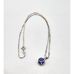 Blue CZ Solitaire Pendant Thailand Sterling Silver Chain Italy ADI 3.5g