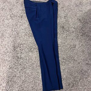 Blue Calvin Klein suit jacket and pants, black interior. Only worn twice. Jacket is a 42R and pants are 32W x 30L. Just dry-cleaned. Does not fit anymore.