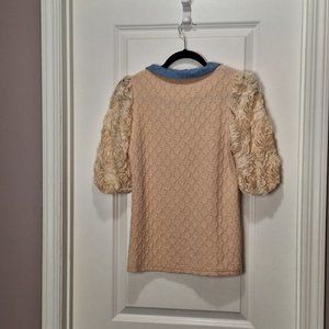 Blue Candy Cream Collared Blouse with Floral Sleeves