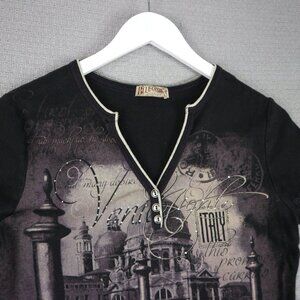 Blue Canyon Made in USA Embellished Italy V Neck Shirt Womens Large