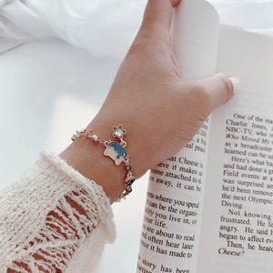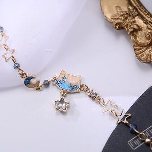 Add a dose of kawaii to your outfit-of-the-day by wearing this mysterious blue cat bracelet! It features a decor shaped like cat with hollow stars and moon.