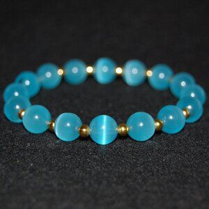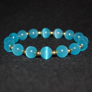 Blue Cat Eye Bracelet,Blue Bracelet,10mm Blue Cat Beaded Bracelet,Special,Lovely