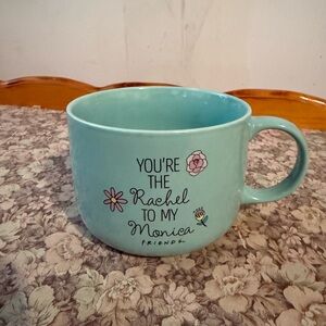 Enjoy your favorite beverage with this charming blue ceramic mug featuring a Friends design. Perfect for fans of the iconic show.