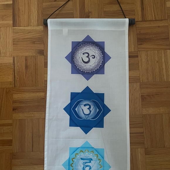 Enhance your yoga/meditation/energy work space with this beautiful chakra wall hanging. Brand new and very clean.