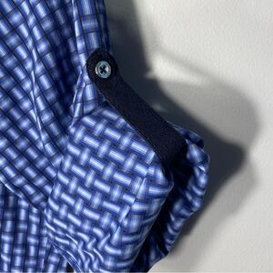 This awesome shirt is in pristine near new condition. No flaws or signs of wear at all. The sleeves can be rolled up and secured with the button tab sleeve.