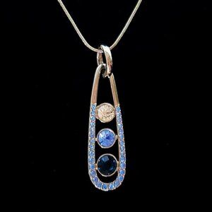 Lia Sophia retired necklace. Blue & Clear Crystal with Silver tone. 2011. Pendant drop is 2 inches aprox. 15 inches chain, with another 3 inches extension. Excellent preloved condition.