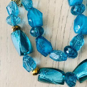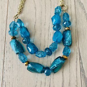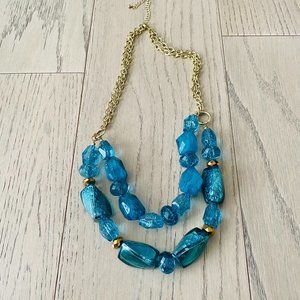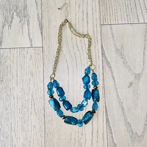 Blue stone and copper necklace with adjustable chain and hook closure.