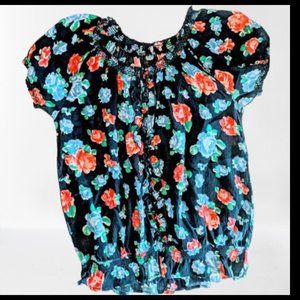 Size Small Unbranded Floral Boho Style Top can be worn On or Off Shoulder