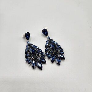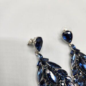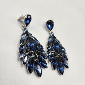Blue Crystal Drop Earrings Waterfall Stud Back