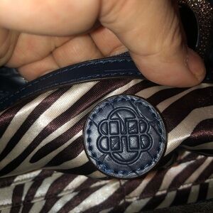 Blue Dana Buchanan Textured Crescent Clutch with Metallic Handle. Super clean